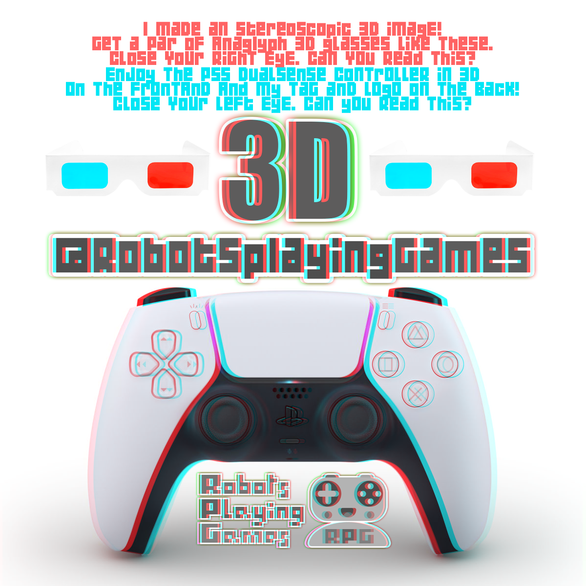 I made an Anaglyph 3D/Stereoscopic 3D image of the PS5 DualSense controller. To see it in 3D you will need red-cyan or red-blue glasses like the ones on the picture.